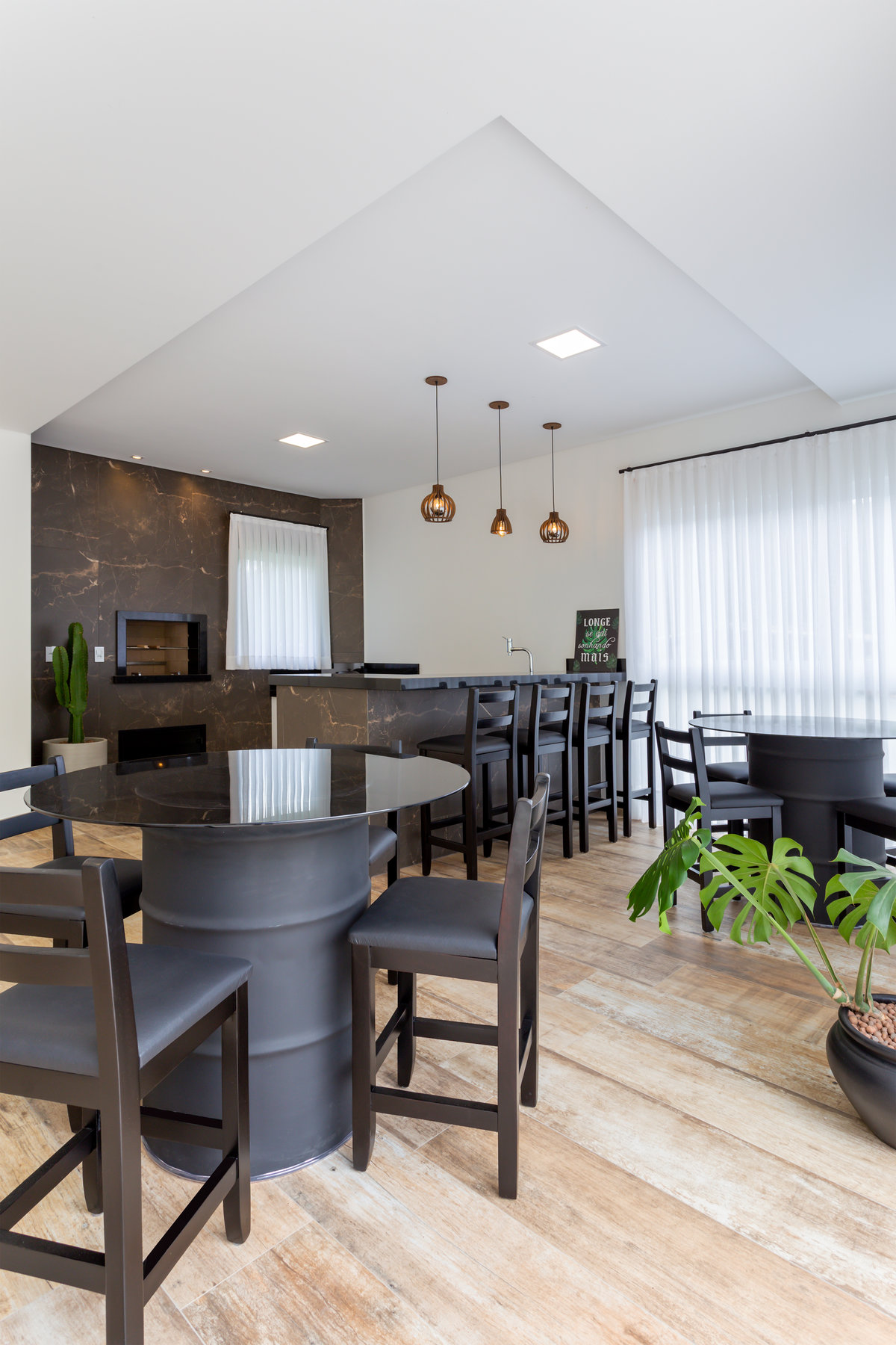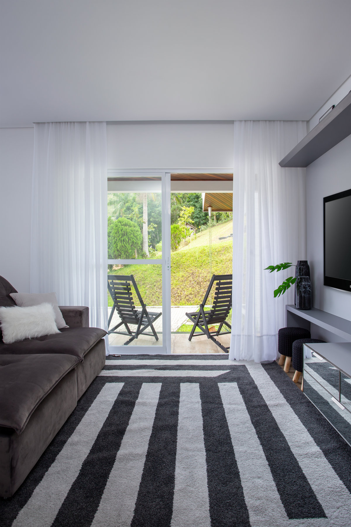 Um ambiente acolhedor, super clean, mas com o toque da madeira no chão, pra dar aquela aquecida.